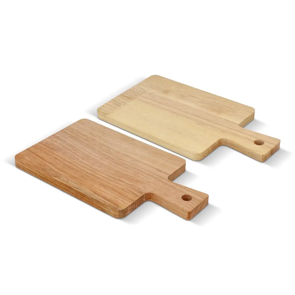 Elevate your brand at events and client gatherings with our 2-pack small wooden Tapas serving trays from InSideOut. Crafted from sustainable Rubberwood, these compact 19cm x 11cm boards are versatile for hot or cold snacks, bringing joy to cozy evenings or professional occasions.