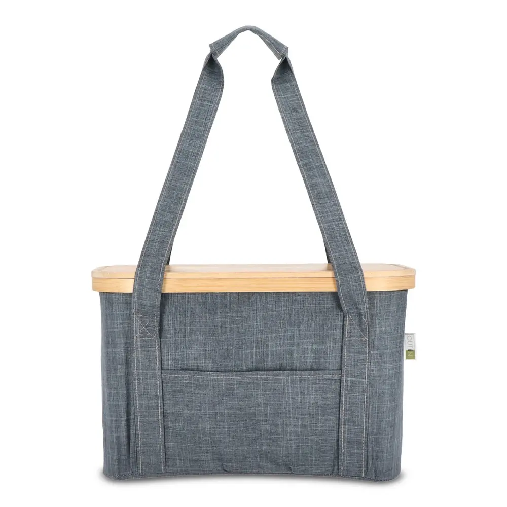 Its innovative design features a removable cool bag with handle and foil lining, a bamboo lid that serves as a cutting board, and convenient front and back pockets for extra organization. Sturdy handles ensure easy portability, while the foldable structure saves space when not in use. Amfori BSCI compliant, it's an eco-friendly choice that aligns with corporate responsibility goals.