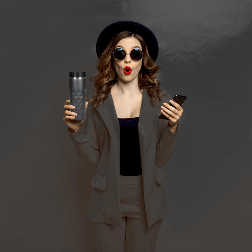 Elevate your brand visibility with the Insulated Mug "Diamond", a premium stainless steel thermo mug perfect for corporate giveaways and events. Its eye-catching matt diamond design with glitter effect delivers a luxurious feel that impresses clients and recipients alike.