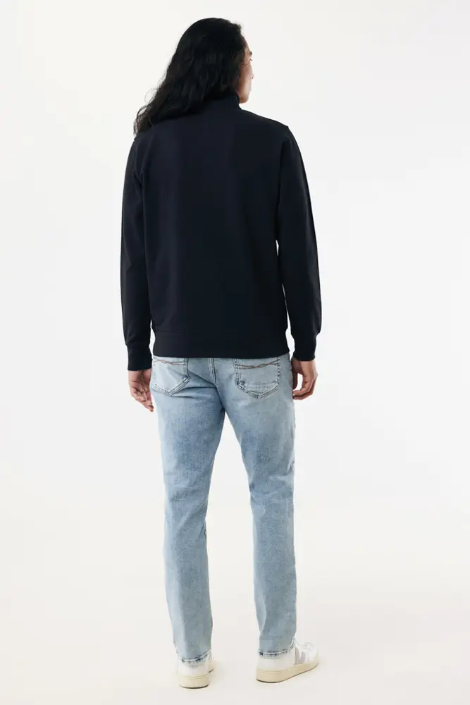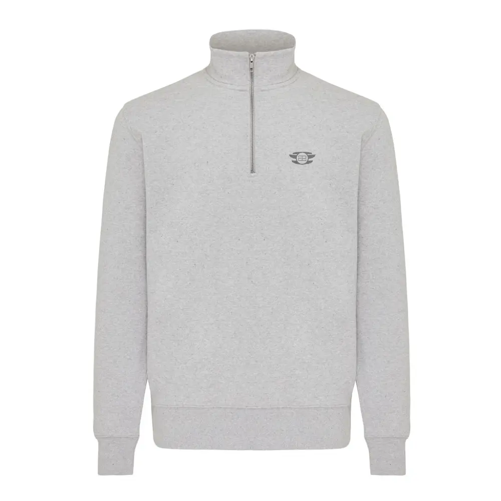 Elevate your brand's eco-conscious image with the IQONIQ Elgon recycled cotton quarter zip sweater, perfect for promotional giveaways and corporate events. Crafted from 100% cotton—30% recycled and 70% organic—this 300 g/m² modern-fit unisex sweater features a self-fabric collar, set-in long sleeves, and 1x1 ribbed cuffs and hem for all-day comfort. The French terry interior ensures softness against the skin, making it ideal for recipients who appreciate sustainable style.