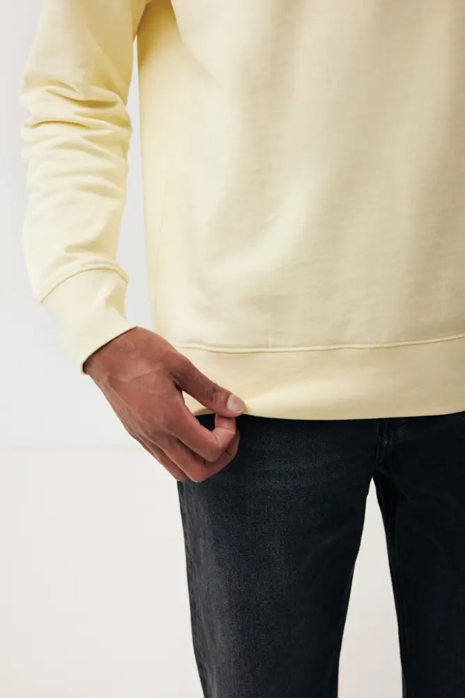 Elevate your brand's promotional efforts with the IQONIQ Etosha lightweight recycled cotton crew neck, a unisex modern fit essential designed for eco-conscious marketing. Crafted from 100% cotton—70% organic and 30% recycled—this 280 g/m² crew neck features long sleeves, a round neckline with 1x1 ribbing at cuffs and hem, and soft-brushed fleece inside for all-day comfort.
