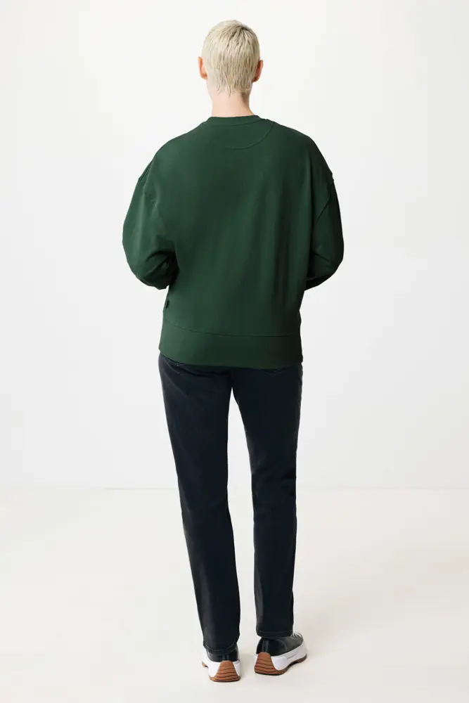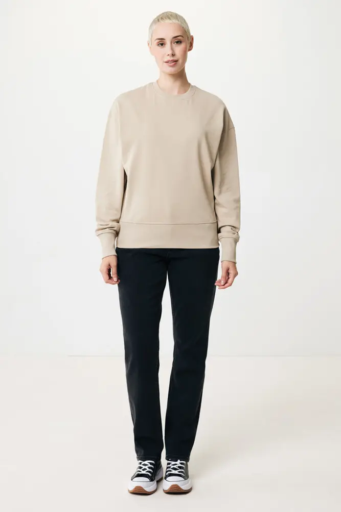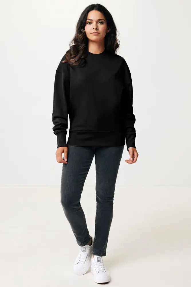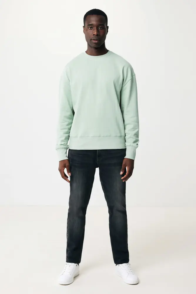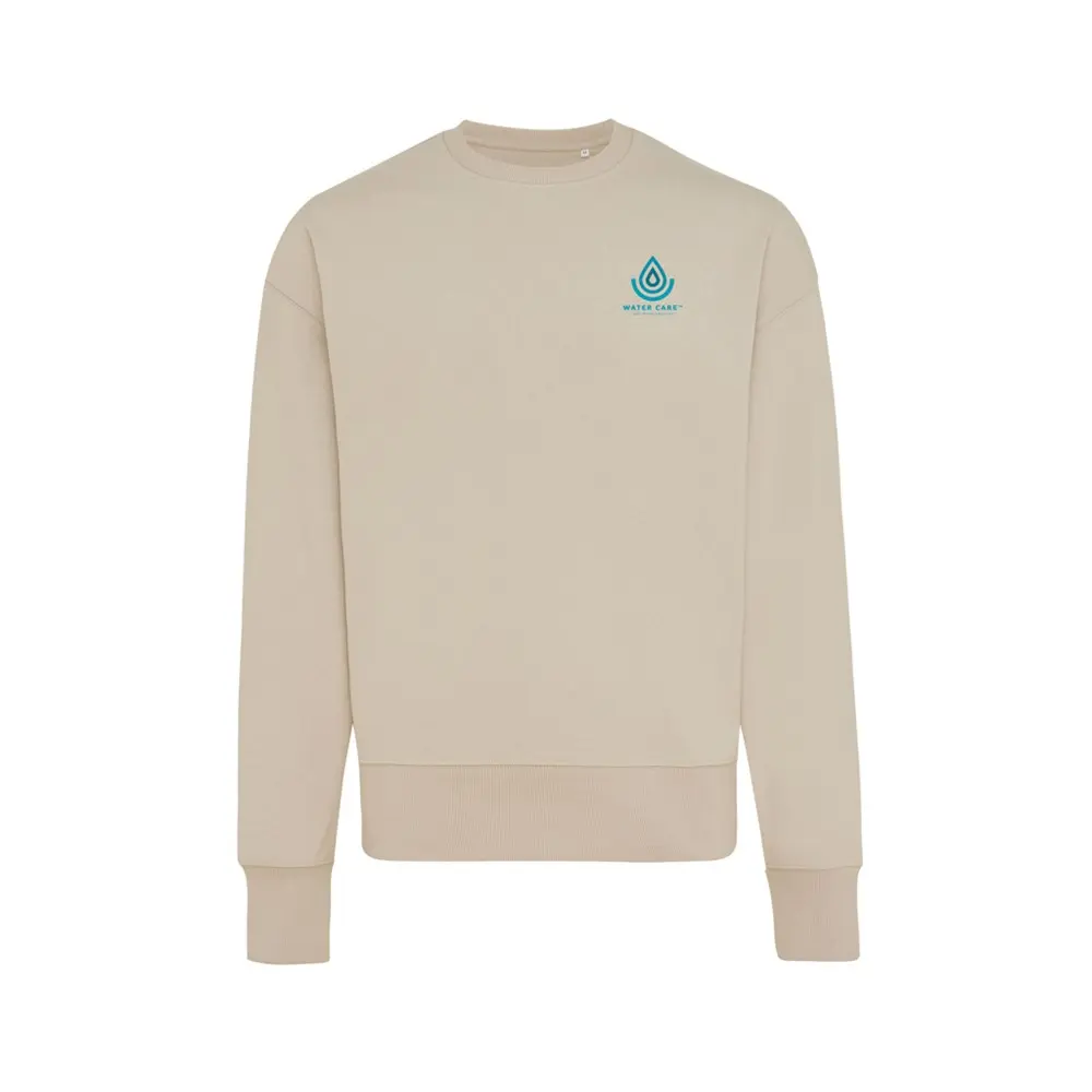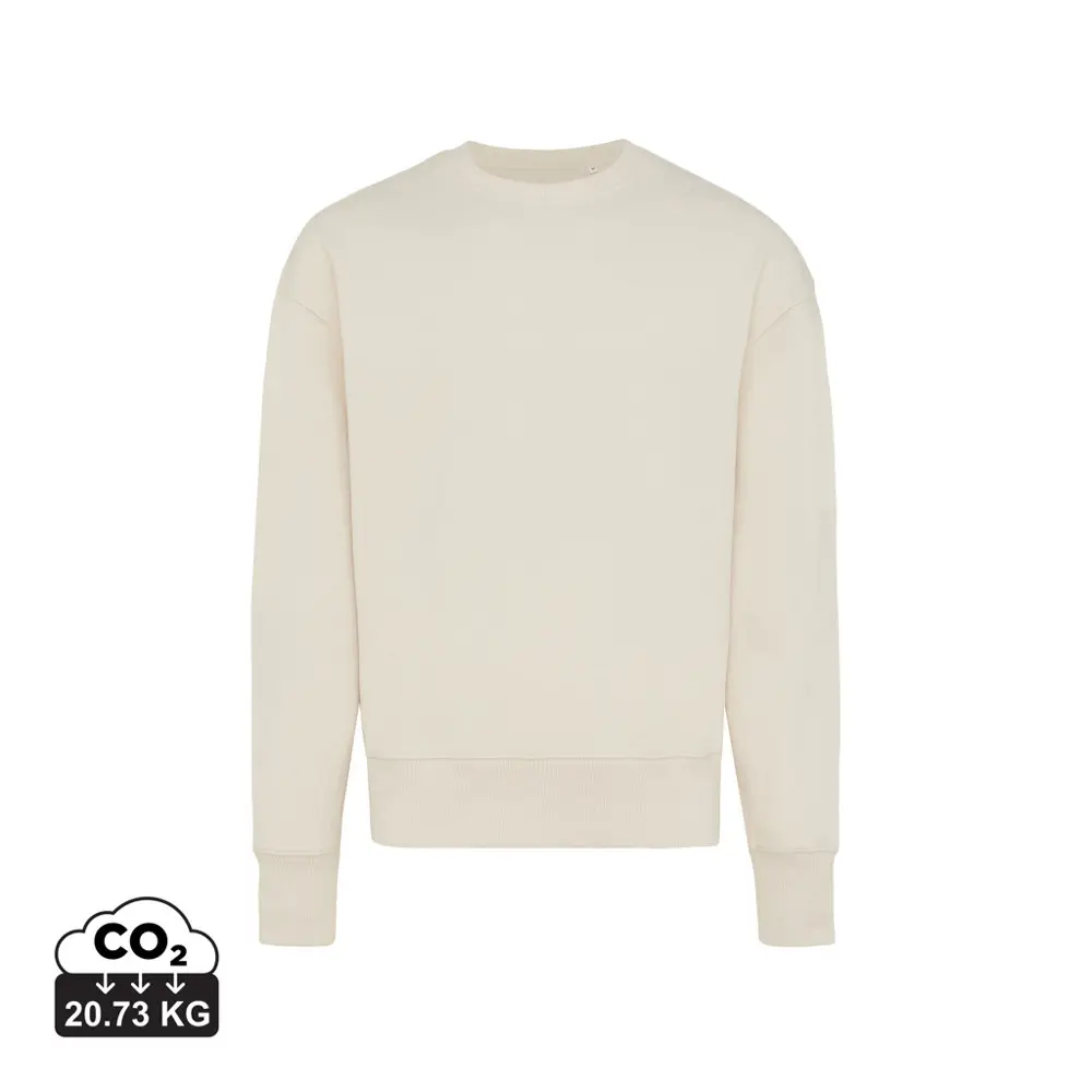 Elevate your brand's promotional efforts with the IQONIQ Kruger relaxed recycled cotton crew neck, a unisex essential perfect for bulk customization. Crafted from 50% recycled and 50% organic cotton in a comfortable 340 g/m² weight, this relaxed-fit sweater features dropped shoulders, a round neckline, wider long sleeves, and soft-brushed fleece inside for all-day wearability.