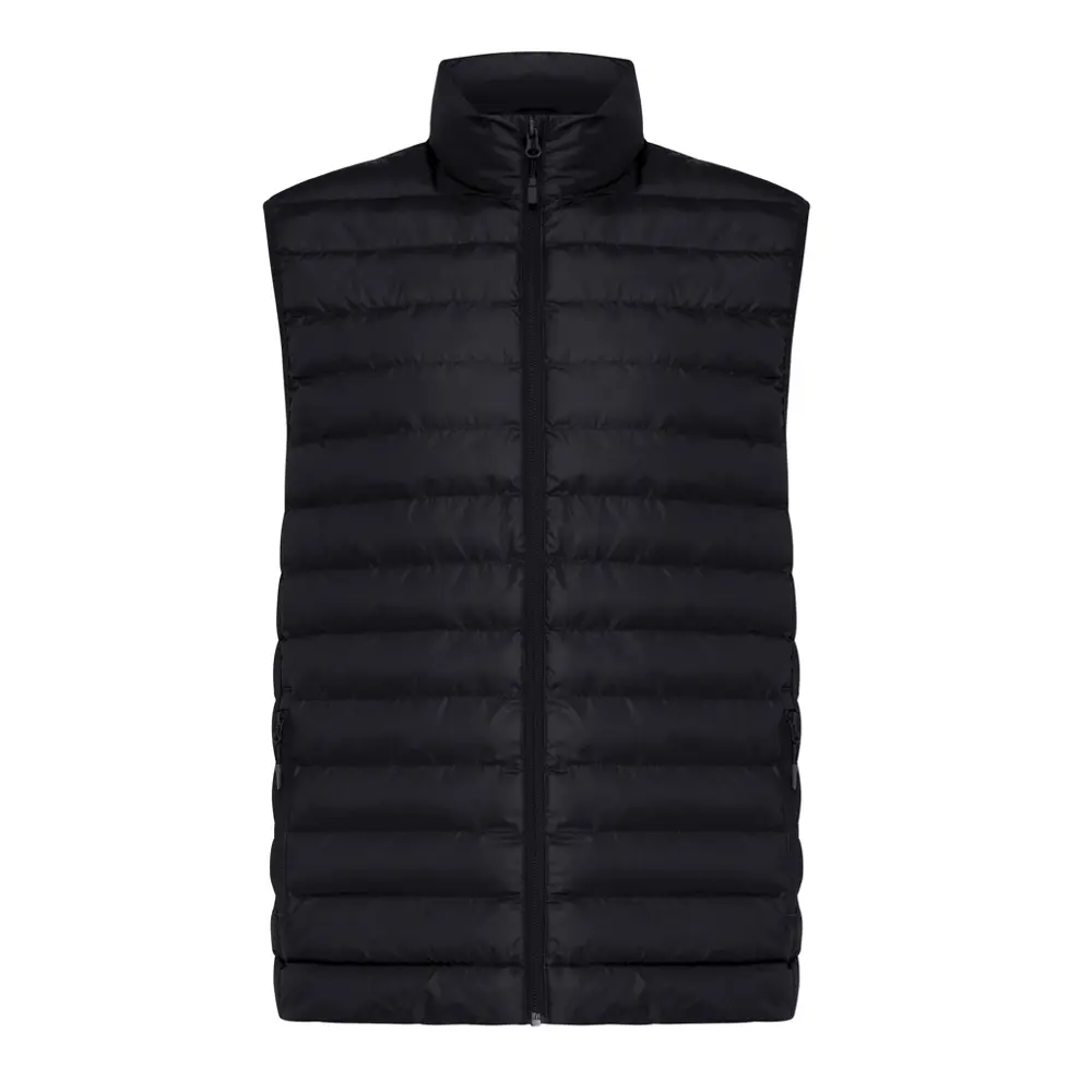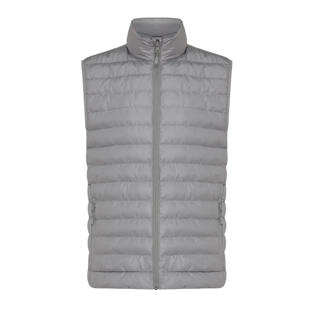 Elevate your brand's eco-conscious image with the IQONIQ Meru Men's Recycled Polyester Bodywarmer. Crafted from 100% post-consumer recycled polyester, this medium-fit, quilted vest features a collar neckline, reversed front zipper, and practical side zip pockets for everyday utility. Elastic armhole binding and clean-finished seams ensure comfort and durability, while fluorine/PFAS-free water repellent finish protects against light weather.