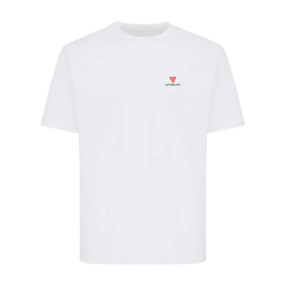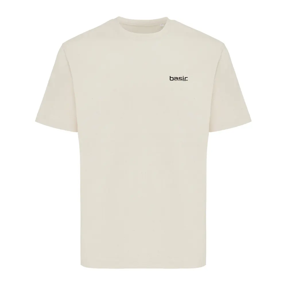 Elevate your brand's eco-conscious image with the IQONIQ Nikko heavyweight recycled cotton t-shirt. Crafted from 50% recycled and 50% organic cotton (220 g/m²), this modern-fit unisex tee features a comfortable crew neck with 1x1 ribbing. Ideal for custom logo printing, it's perfect for marketing campaigns, events, and client giveaways—showcasing your commitment to sustainability while promoting your business.