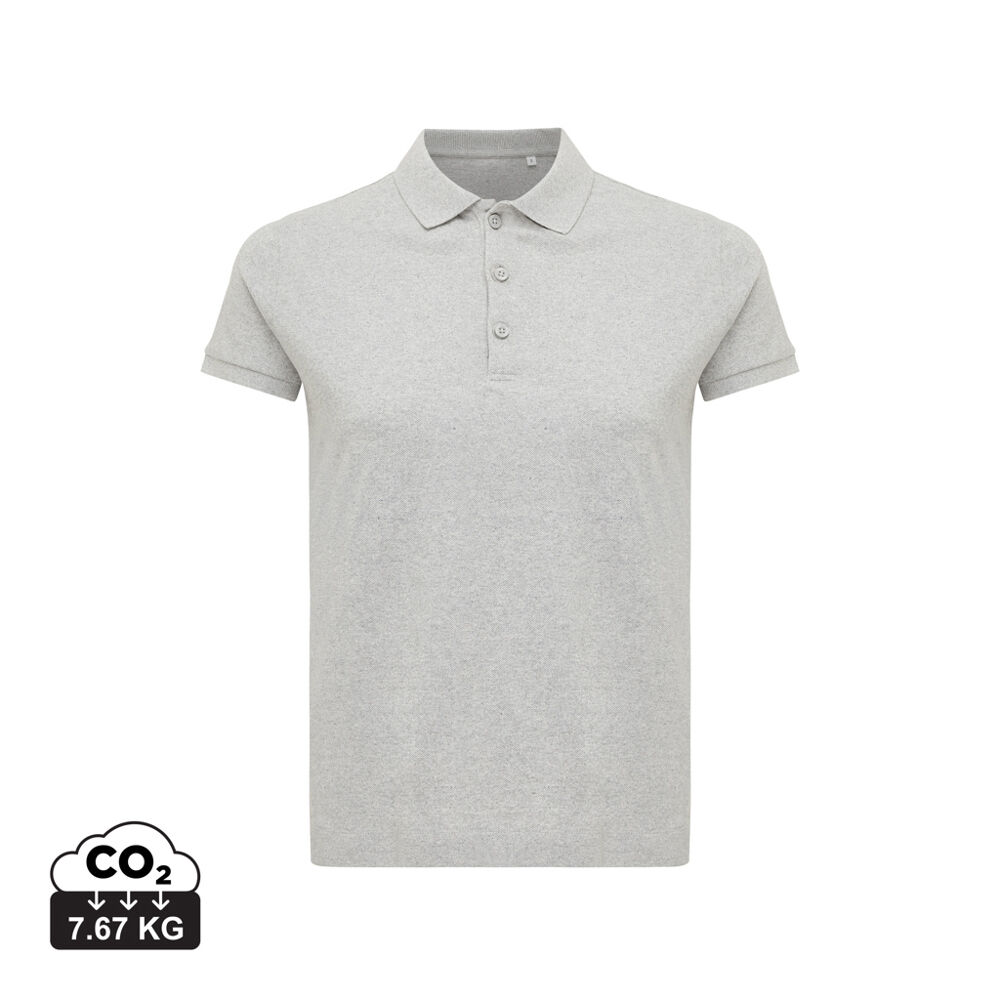 Ideal for marketing professionals and event organizers, this polo supports custom logo embroidery to showcase your company identity. Its eco-credentials shine through AWARE™ technology with blockchain tracing—scan the QR code for a full digital passport verifying recycled content and low environmental impact. Certified OEKO-TEX® STANDARD 100, it's gentle on skin and planet, with 2% of proceeds aiding Water.org. Note: Recycled yarns may show natural impurities for authentic sustainability.