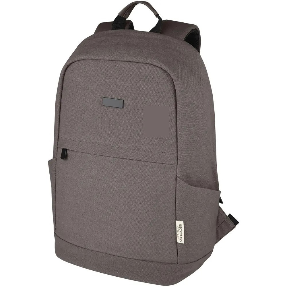Elevate your brand's promotional efforts with the Joey 15.6" GRS recycled anti-theft laptop backpack, an eco-friendly choice perfect for marketing campaigns and events. Crafted from 80% GRS-certified recycled cotton blended with 20% cotton (330 g/m²) and lined with GRS RPET, this 18L backpack (35 x 46 x 13 cm) combines sustainability with practical security features, including a hidden back pocket for safe on-the-go access and anti-theft design to protect valuables.