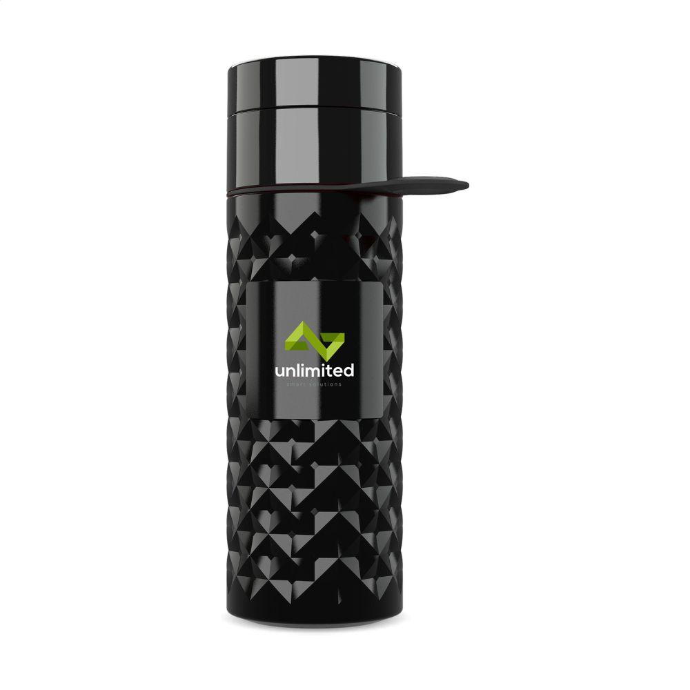 The eye-catching 3D diamond pattern elevates its visual appeal, ensuring your custom logo imprint grabs attention at events, trade shows, or client giveaways. Dual screw-cap openings provide versatility: a standard drinking spout and a wide mouth for easy ice addition and thorough cleaning.