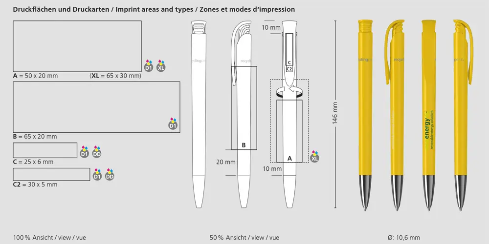 Ideal for event organizers and marketing teams, it offers ample space for custom logo imprinting, ensuring your message reaches clients effectively. The Silktech L refill delivers 3,000 meters of vibrant ink, promoting long-lasting impressions while supporting environmental responsibility. Choose this pen to align your promotions with green initiatives and boost brand visibility.