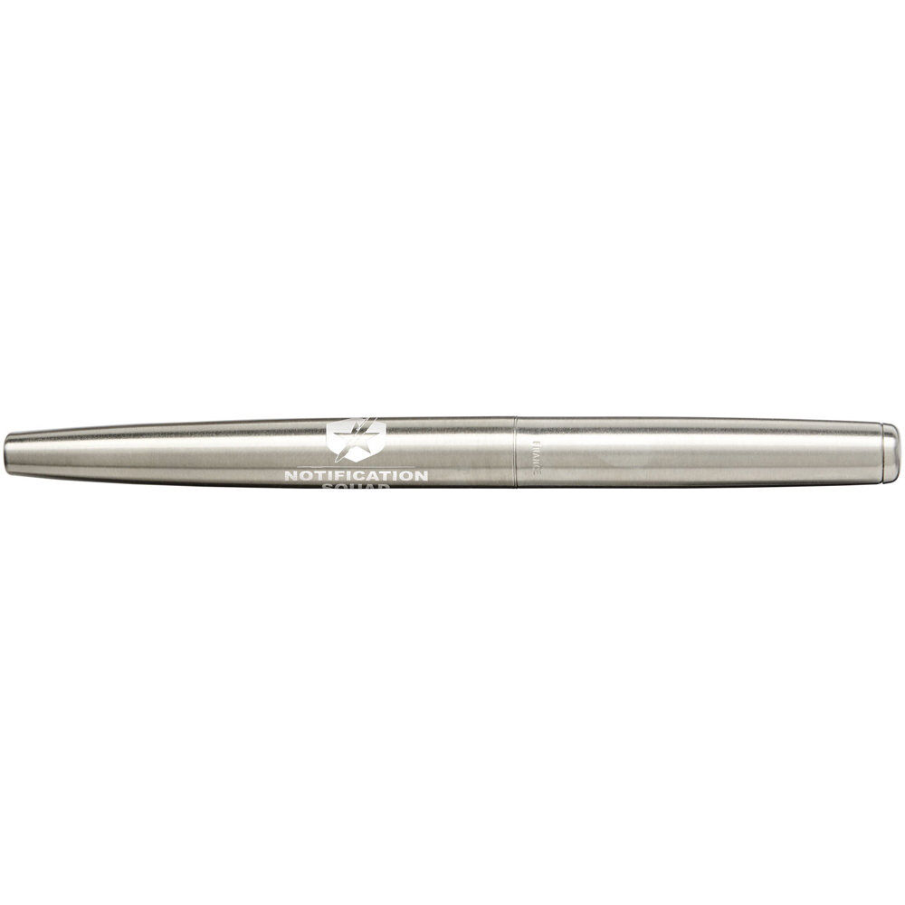 Elevate your brand with the Parker Jotter fountain pen, a sleek and timeless promotional essential perfect for marketing campaigns and events. Crafted from durable stainless steel with elegant chrome trim, this compact writing instrument measures 12.1 cm in length and 1 cm in diameter, ensuring comfortable handling and a professional feel.