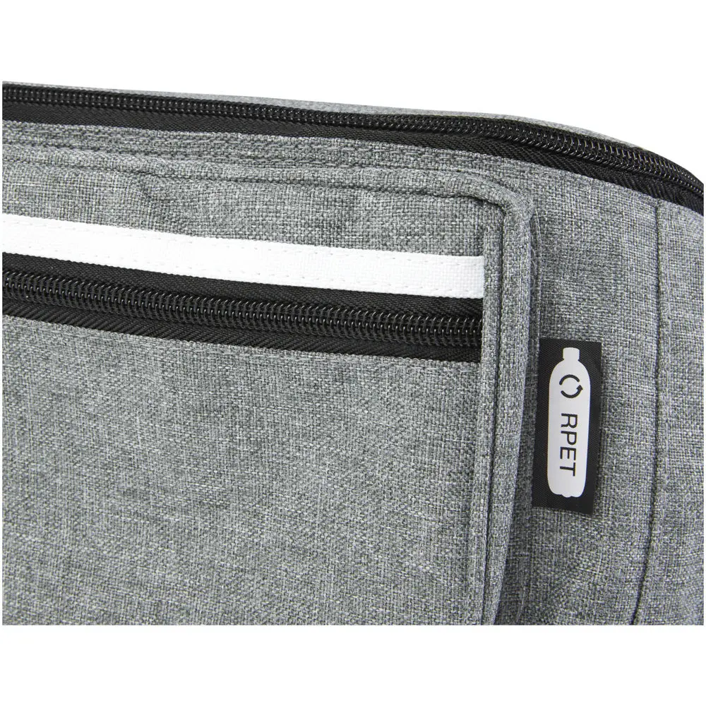 Enhance your brand's visibility with the Journey Waist Bag, a sustainable promotional essential crafted from 600D GRS-certified recycled polyester. Ideal for marketing campaigns and events, this eco-friendly accessory measures 38 x 15 x 7.6 cm, offering a spacious zippered main compartment for essentials and a secure front pocket for quick access.