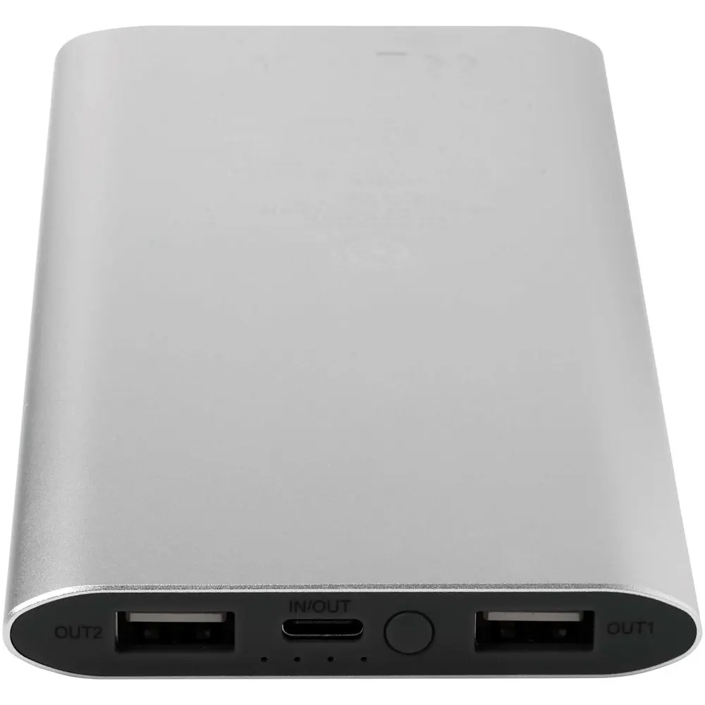 Charge up to three devices simultaneously via dual USB-A ports and a Type-C input/output, plus 5W wireless charging for Qi-enabled gadgets—ideal for keeping clients connected during busy conferences or trade shows. With an 8000 mAh lithium polymer battery offering up to 10W output, it ensures all-day power without bulk (compact at 15 x 1.2 x 7.4 cm).