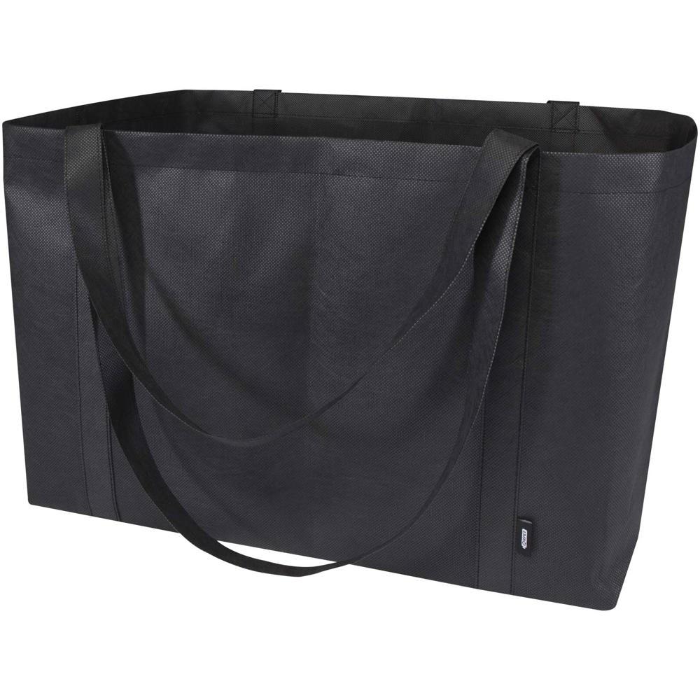 Elevate your brand visibility with this jumbo GRS certified recycled tote bag, crafted from durable, tear-resistant non-woven RPET material. With an impressive 65L capacity, it's perfect for large grocery hauls, beach days, or park outings, making it an ideal promotional giveaway for marketing campaigns and events.