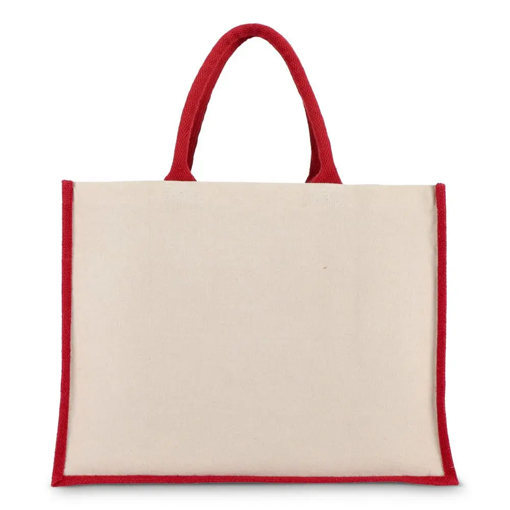 Discover a versatile tote bag designed for businesses seeking sustainable promotional items. This stylish option combines cotton canvas front and back panels with jute sides and bottom, all at 320gsm for durability. Finished with cotton handles and side panels, it offers a professional look that's ideal for customization with your company logo.
