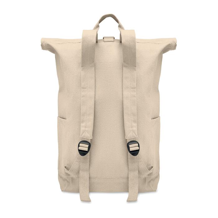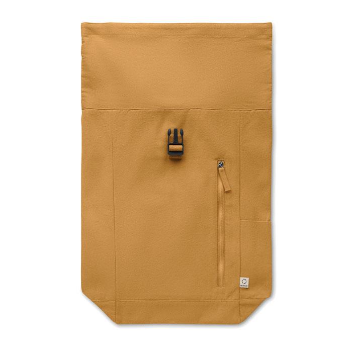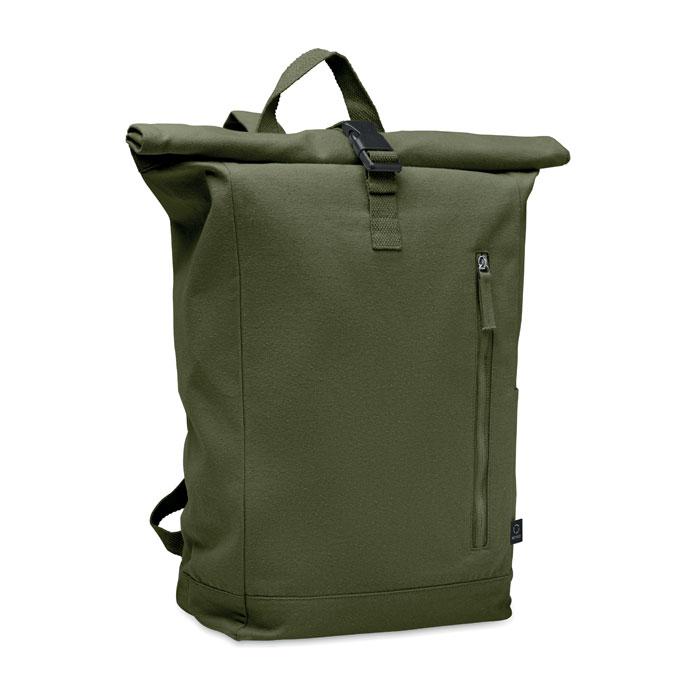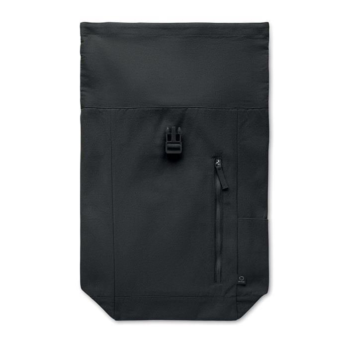 Elevate your brand with this premium roll top backpack, crafted from durable 390 gr/m² recycled cotton (80%) and recycled polyester (20%). Featuring a secure hook and loop closure for easy access and a zippered front pocket for essentials, it's designed for everyday reliability.