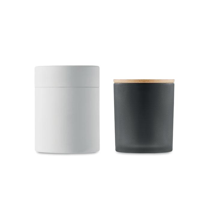 Elevate your brand with our fragranced plant based wax candle, perfect for custom logo printing. Housed in a stylish frosted glass jar with a sustainable bamboo lid, this 120 gr candle offers up to 20 hours of burn time. Packaged in a convenient paper tube gift box for easy distribution at events or as client giveaways.