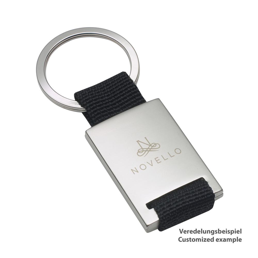 Elevate your brand visibility with this stylish key ring that blends sporty flair and elegant design. The durable metal ring paired with a flexible nylon strap ensures everyday practicality and a modern look that appeals to active professionals.