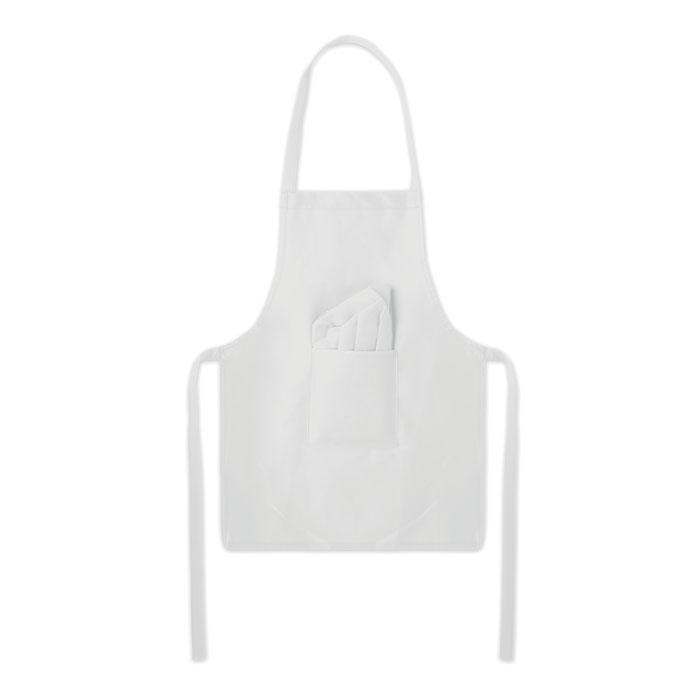 Elevate your brand visibility at family events, trade shows, or corporate gatherings with this engaging personalized kid's chef hat and apron set. Crafted from sustainable RPET non-woven fabric (80 gr/m²), it offers an eco-friendly alternative to traditional promotional items, appealing to environmentally conscious audiences.
