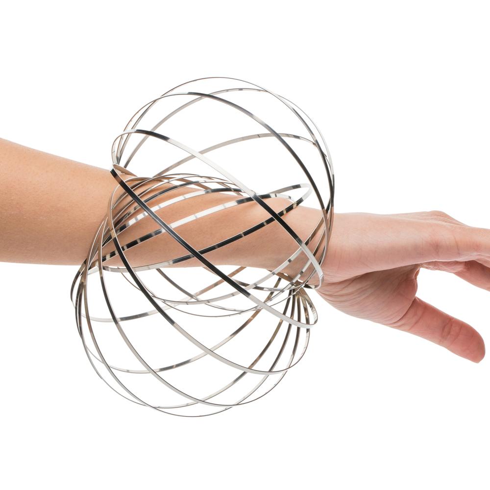 This interlocking spiral ring folds flat for portability, expands into engaging sculptures, and rolls smoothly along arms or between players, delivering instant stress relief and interactive fun.