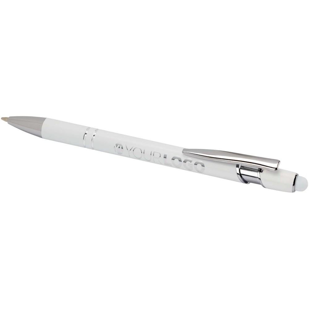 Elevate your brand with this sustainable ballpoint pen featuring a barrel crafted from recycled aluminum and a practical silicone touch stylus. Ideal for marketing professionals and event organizers seeking customizable promotional gifts.