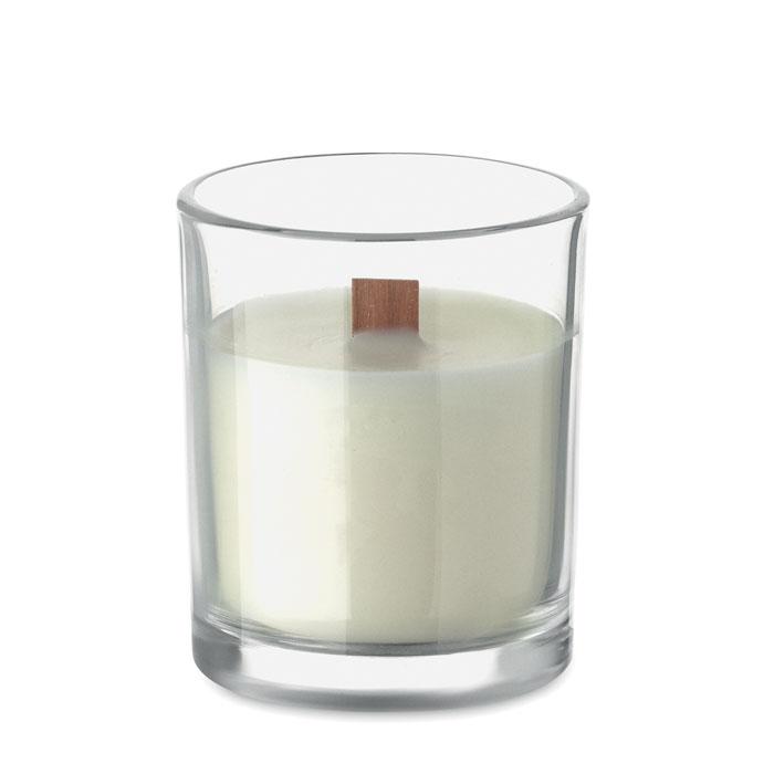 Elevate your brand visibility with the KIVAS WOOD Plant Based Wax Candle, 80g – a premium vanilla-fragranced option in a sleek glass jar with a wooden wick for a soothing, crackling flame and up to 14 hours of burn time.