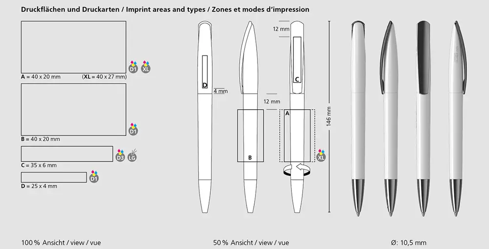The innovative twist mechanism offers smooth, reliable operation, while the high-quality Silktech L refill writes up to 3,000 meters in blue or black ink. Optional refills like Silktech XL or Multi-Gel provide versatility for your marketing needs.
