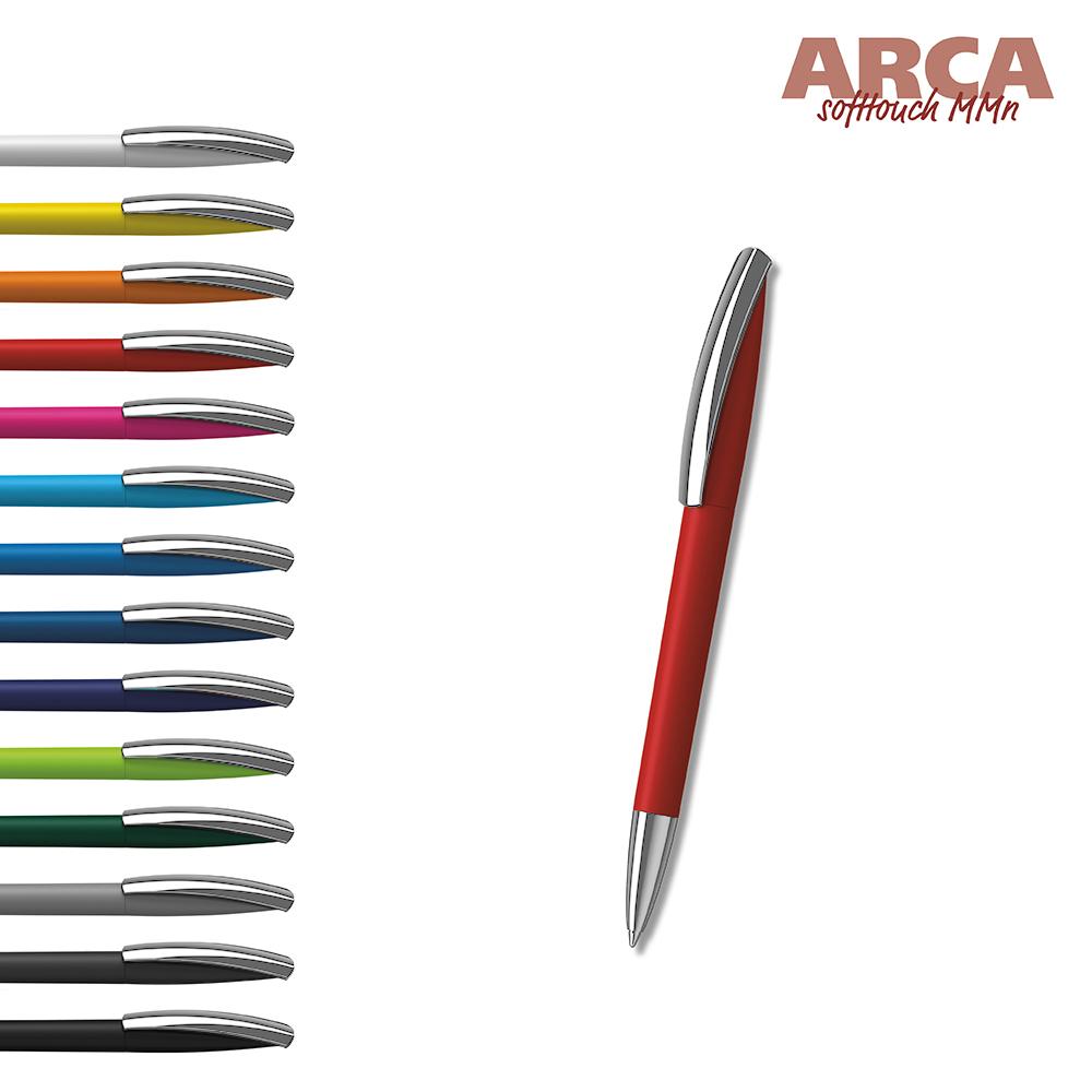 Elevate your brand with the Arca softtouch MMn, a premium twist action ballpoint pen designed for high-impact promotional giveaways. Its ergonomic rubberised softtouch surface on the ABS plastic barrel ensures comfortable, fatigue-free writing, making it ideal for extended use at events or daily client interactions.