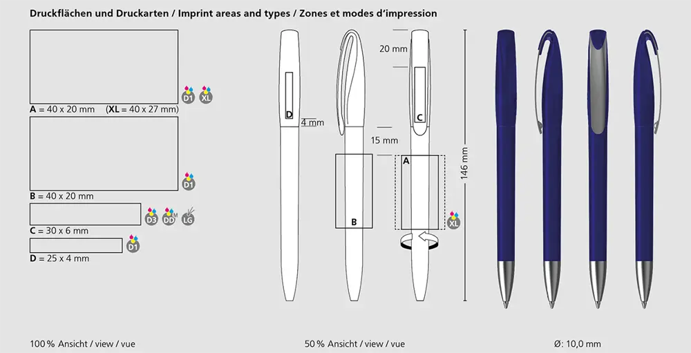 Made in Europe for superior quality and sustainability, the pen includes a high-performance Silktech L refill (blue or black) that writes up to 3,000 meters, providing reliable performance that keeps recipients engaged with your brand longer. Customize in bulk to create memorable, cost-effective advertising tools that drive customer loyalty and business growth.