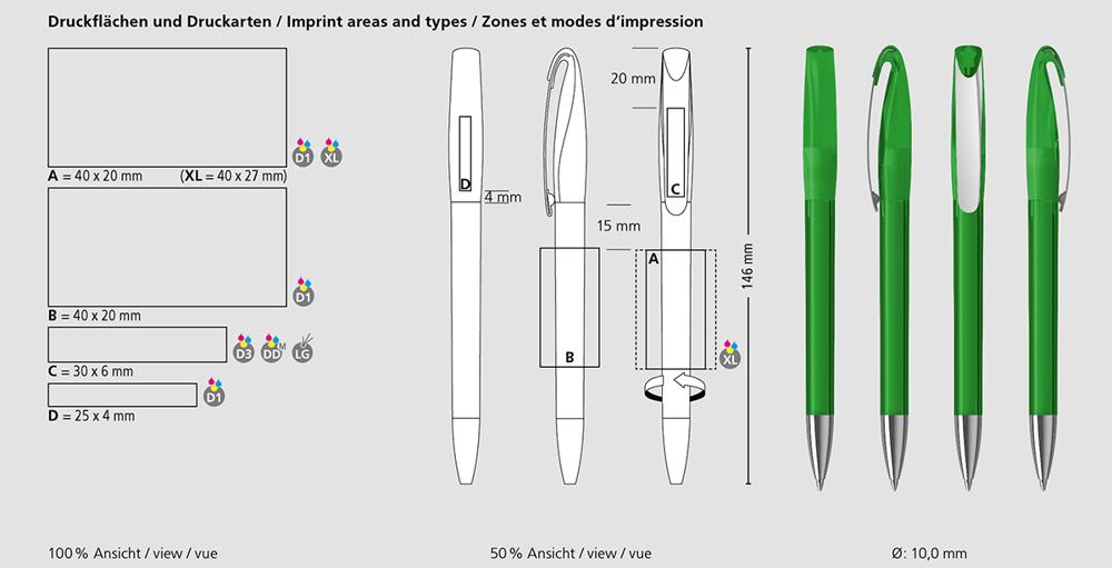 Crafted from durable transparent M-ABS plastic with a premium mix of matte and shiny finishes, brass nickel-plated tip, and spring steel clip, this pen offers a modern, high-end feel that showcases your logo prominently. The eco-friendly recycled polypropylene refill tubes appeal to sustainability-focused audiences, making it an ideal choice for corporate gifting.