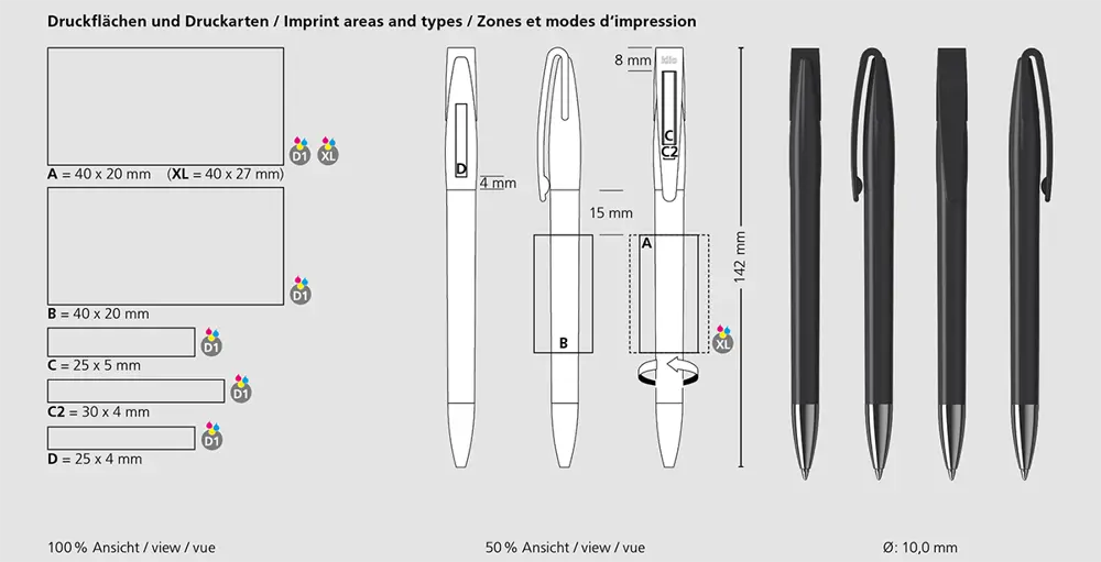 Equipped with a high-quality Silktech L refill that writes up to 3,000 meters in blue or black ink, this pen ensures long-lasting functionality. Upgrade to optional Silktech XL, Multifill P, or Multi-Gel refills for enhanced writing experiences tailored to your promotional needs.