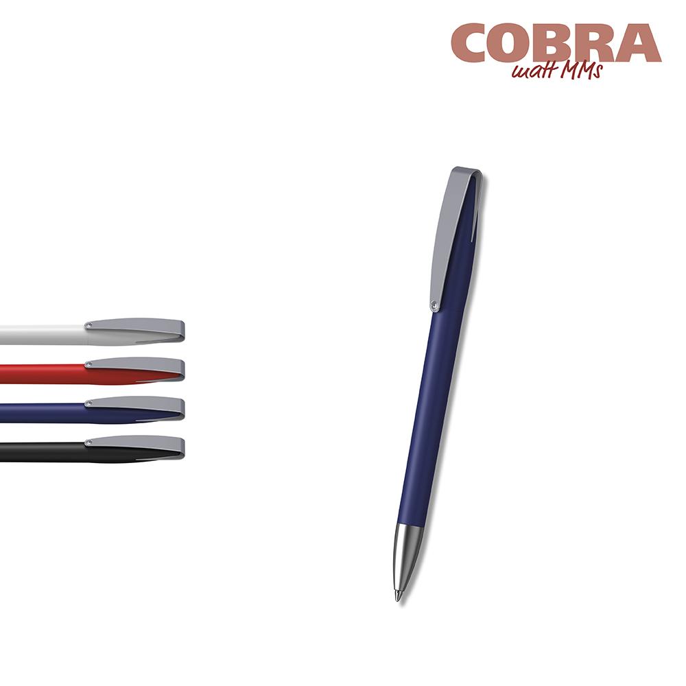 Elevate your promotional giveaways with the Cobra matt MMs Twist Action Ballpoint Pen, a sleek and reliable choice for marketing professionals and event organizers. Its premium construction features a satin chrome tip and clip paired with durable matt ABS plastic barrel, ensuring a professional feel that stands out in client hands.