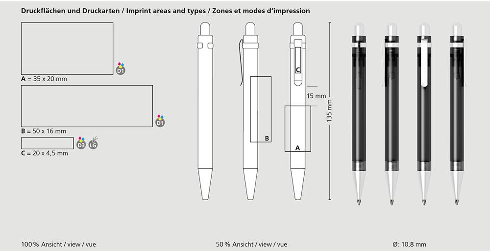 Featuring a reliable Icefill refill for smooth 2,000-meter writing and an optional Silktech L upgrade, it ensures consistent performance for everyday use. Perfect for customization with your company logo, these retractable pens provide effortless branding on the go—no cap to lose, just click and write.