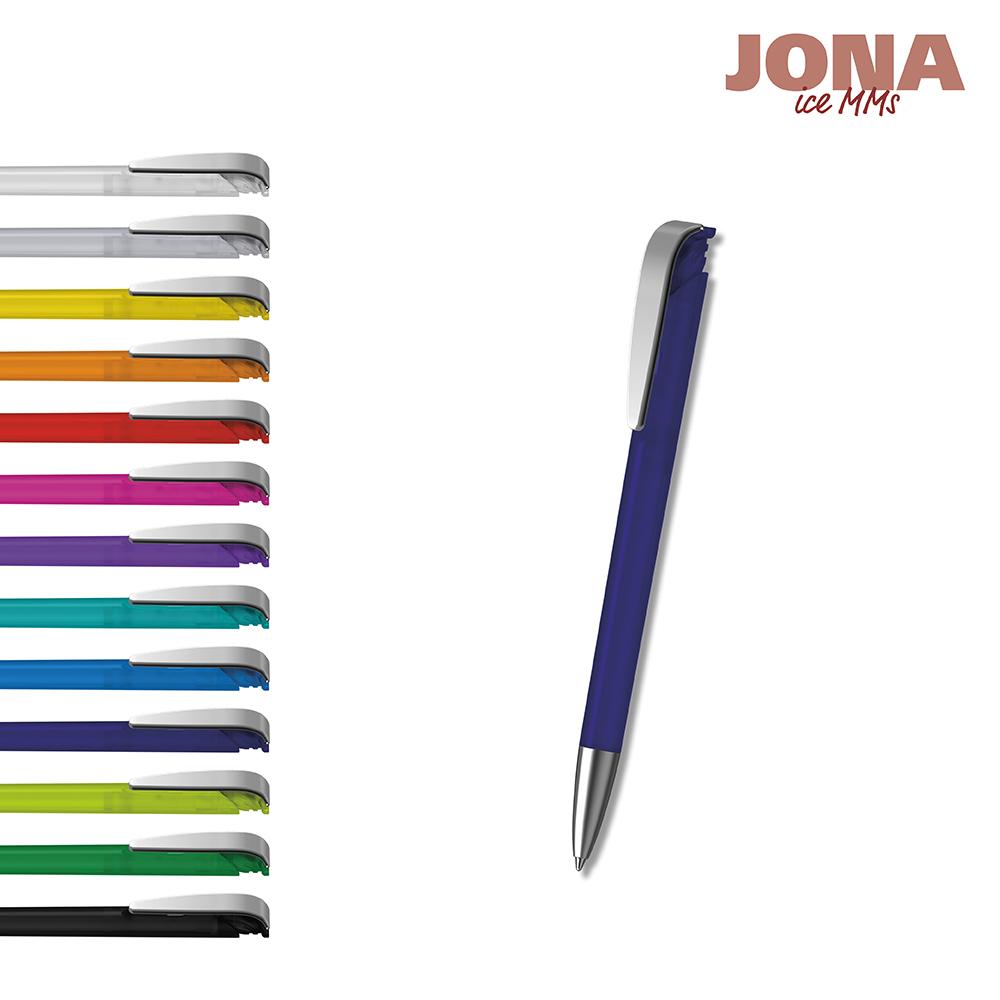 Elevate your brand with the Jona ice MMs retractable ballpoint pen, a premium promotional giveaway designed for marketing professionals and event organizers. Crafted with a satin chrome brass tip for smooth writing, a frosted plastic barrel and push button for a modern matte finish, and a durable spring steel clip, this pen combines style and functionality.