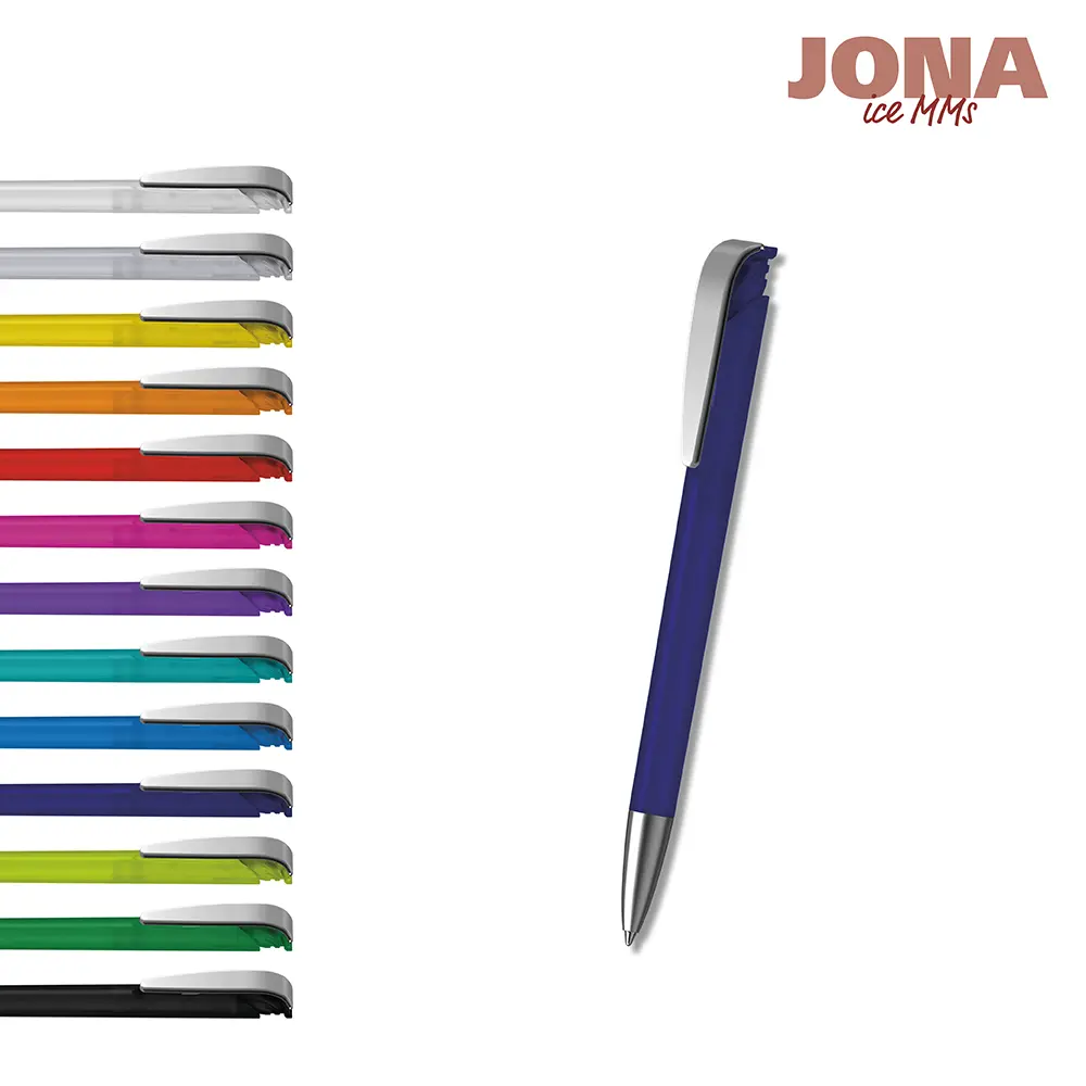 Elevate your brand with the Jona ice MMs retractable ballpoint pen, featuring a sleek and enduring design perfect for promotional giveaways. Crafted for reliability, this pen ensures smooth writing and a professional appearance that leaves a lasting impression on recipients.