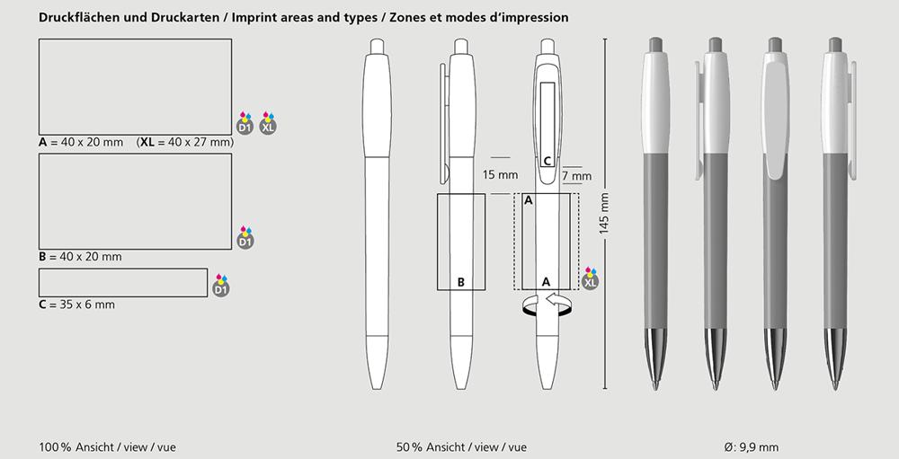 Made with an eco-friendly recycled polypropylene (rPP) refill tube, it supports sustainable marketing efforts while ensuring reliable performance with options like the standard Silktech L refill or upgrades such as Silktech XL, Multifill P, or Multi-Gel for extended writing length and versatility.