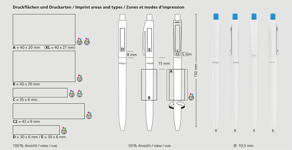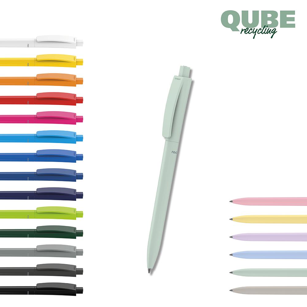 Elevate your brand's sustainability efforts with the Qube Recycling Retractable Ballpoint Pen, crafted from high-gloss recycled plastic (rABS) for the barrel, upper barrel, and push button, plus recycled polypropylene (rPP) refill tubes. This eco-friendly promotional pen delivers smooth writing performance with the reliable Silktech L refill (3,000m writing length) in blue or black, with optional upgrades like Silktech XL, Multifill P, or Multi-Gel.
