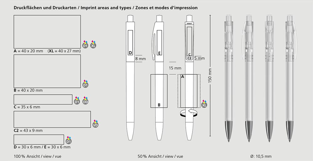 Made with sustainability in mind, featuring refill tubes from recycled polypropylene (rPP), this pen appeals to eco-conscious audiences while delivering professional quality. Choose from high-performance refills like Silktech L (3,000m writing length) in blue or black, or upgrade to Silktech XL, Multifill P, or Multi-Gel for extended use and versatility.