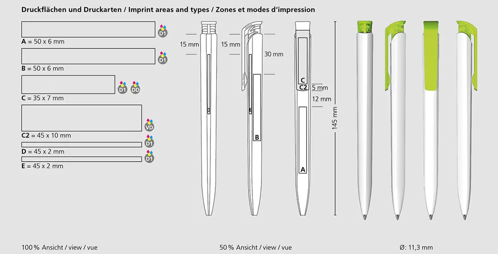Perfect for marketing professionals and event organizers, this pen is designed for large-scale personalization with your company logo. Made in Europe, it combines quality craftsmanship with sustainability, enhancing your brand's image as environmentally conscious.