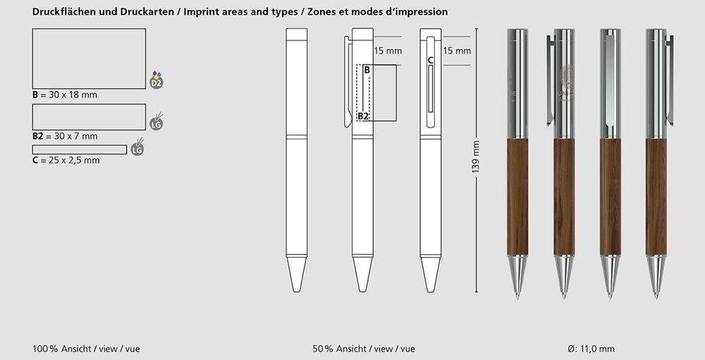Elevate your promotional giveaways with this premium twist action ballpoint pen featuring a genuine nutwood barrel. Crafted with a brass-plated tip and upper barrel, plus a sturdy steel-plated clip, it delivers a sophisticated feel that stands out.