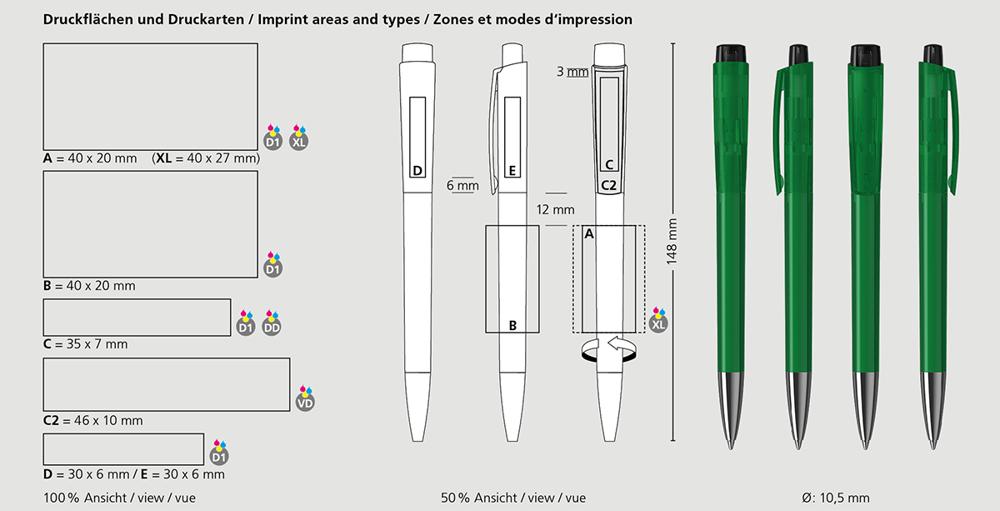 Crafted with a durable brass nickel-plated tip, robust M-ABS plastic barrel and push button, plus eco-friendly refill tubes from recycled polypropylene, this pen combines reliability and sustainability. The high-performance Silktech L refill delivers smooth, long-lasting writing, with optional upgrades for versatile use.