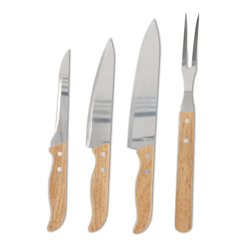 Crafted for durability and precision, the knives provide excellent cutting performance suitable for everyday use. The included carving fork complements the set, making it a complete solution for home cooks. Presented in a sophisticated gift box, it's ready for immediate distribution at trade shows or corporate events.
