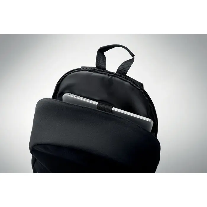 Elevate your brand with this eco-conscious 15-inch laptop backpack, designed for marketing teams and event organizers. Crafted from recycled pre-consumer cotton and polyester, it combines durability with environmental responsibility, making it a perfect promotional item to distribute at events or as client gifts.