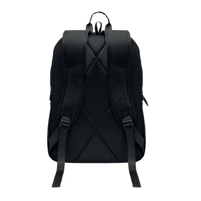 Elevate your brand visibility with the KOROVIN 15" soft PU laptop backpack, a sustainable choice crafted from recycled materials for eco-conscious marketing campaigns. This versatile backpack features a padded back for ultimate comfort during commutes or events, and a hidden zippered main compartment to securely hold a 15-inch laptop.