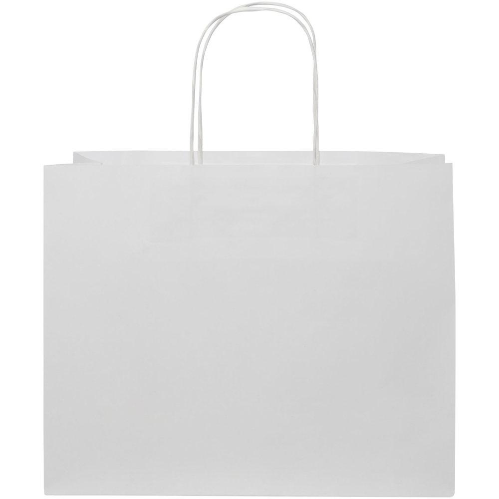 Elevate your brand visibility with this spacious 120 g/m2 kraft paper bag, measuring 31 x 12 x 25 cm. Featuring sturdy twisted paper handles for comfortable carrying, it offers generous customizable space on both front and back panels—ideal for logo printing or eye-catching designs.