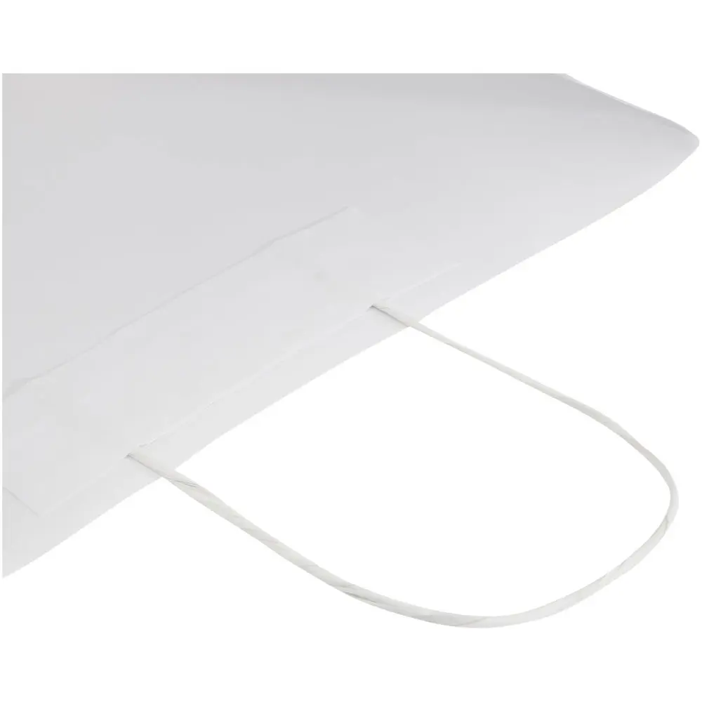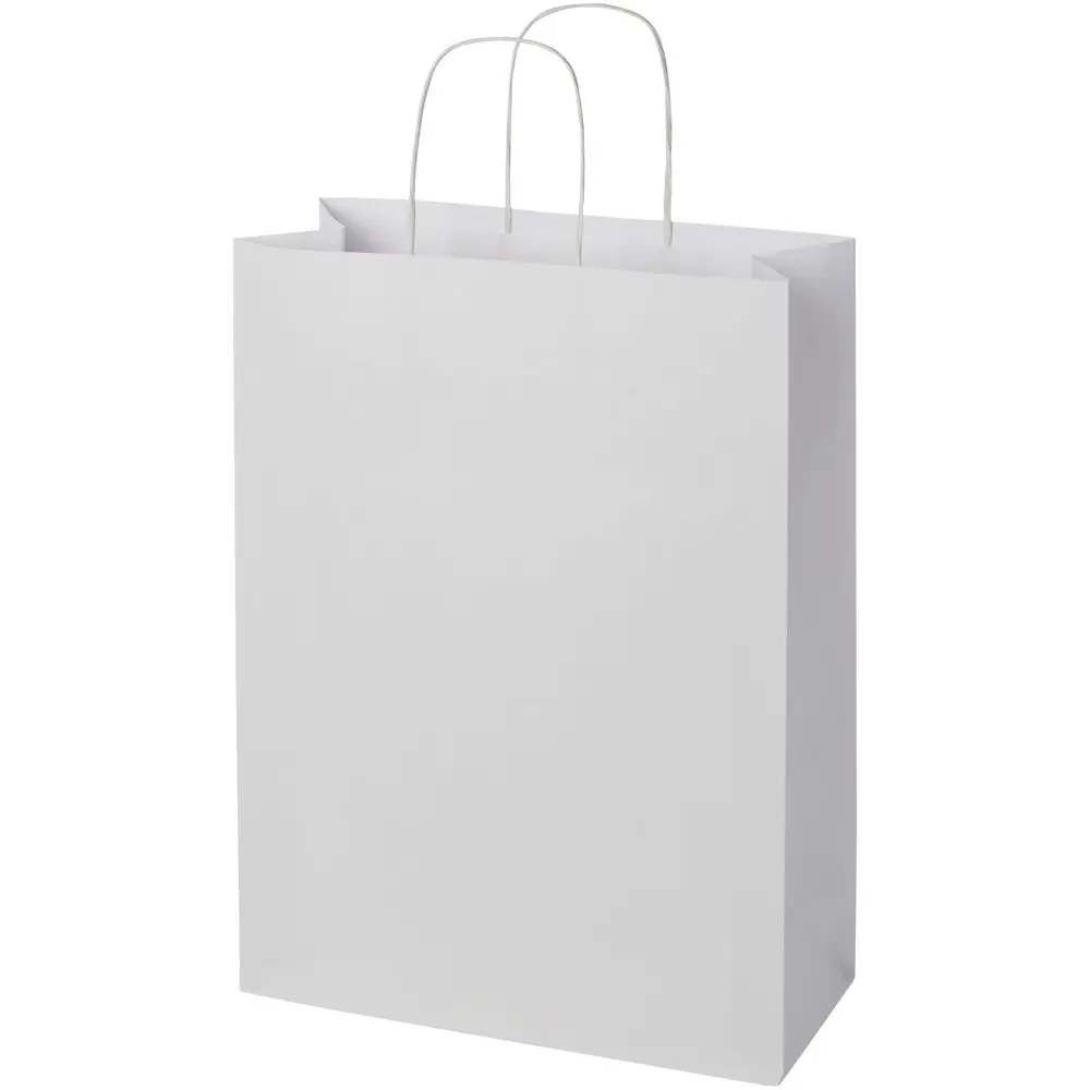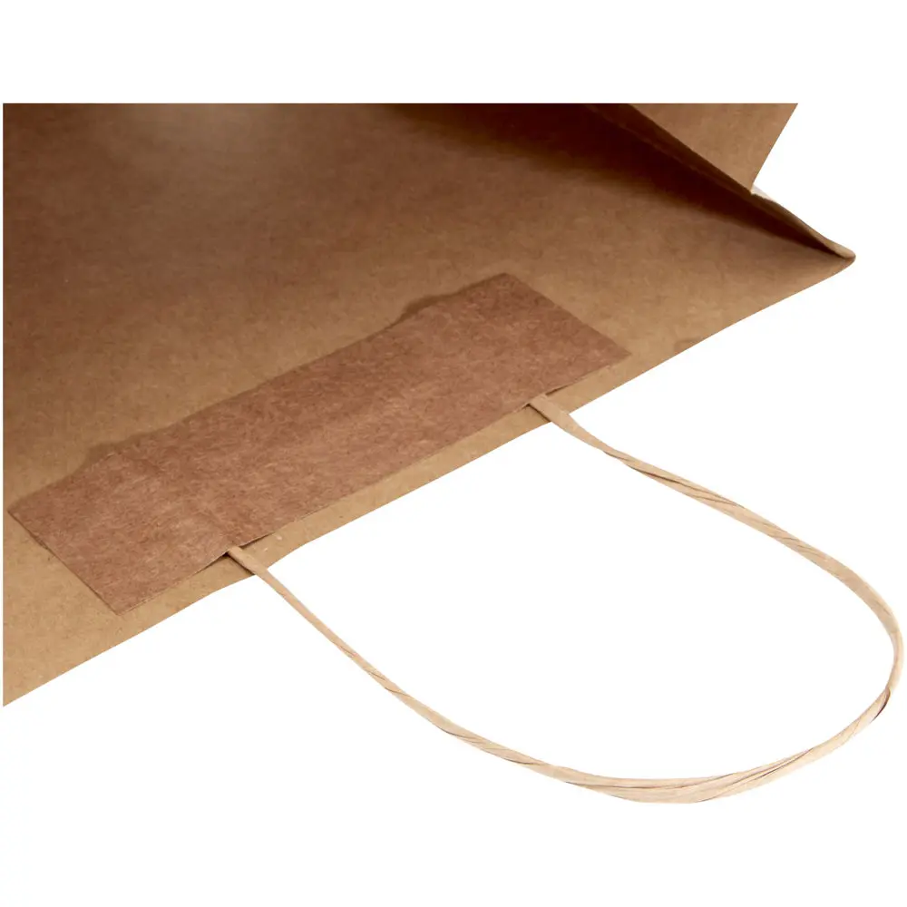 Elevate your brand visibility with our XXL kraft paper bags, crafted from durable 120 g/m² material for a spacious 31 x 41 x 12 cm size. Featuring sturdy twisted paper handles, these bags offer ample customization space on the front and back panels, perfect for logo printing or eye-catching designs to promote your business at events or as giveaways.
