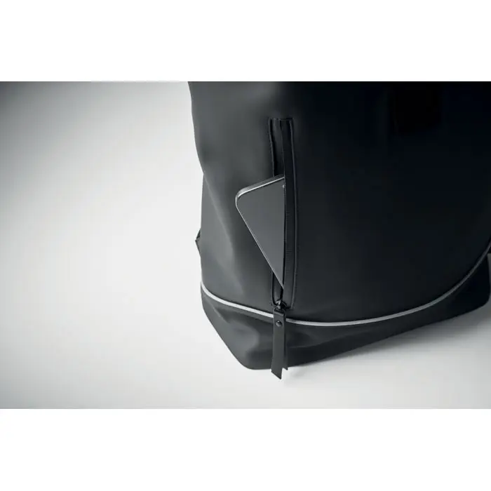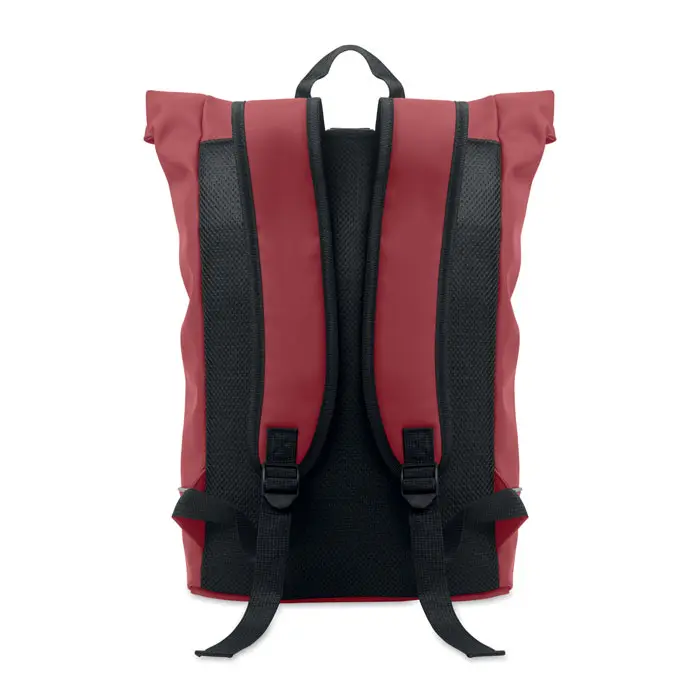 Elevate your brand visibility with the LAPTOSA 15" roll top PU backpack, a premium choice for personalized promotional gifts. Crafted from soft PU with recycled 210D RPET polyester lining, this sustainable option appeals to eco-conscious clients while showcasing your logo through custom printing.