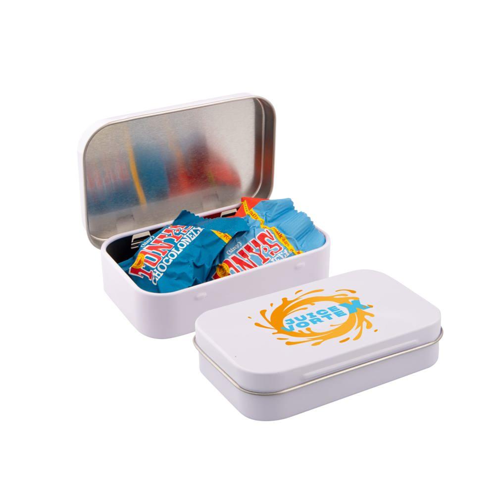 Elevate your brand visibility with our Large Hinged Tin, generously filled with approximately 45 grams of sugar-free mints. This durable, reusable tin features a secure hinged lid, making it perfect for marketing professionals and event organizers seeking high-impact promotional giveaways.