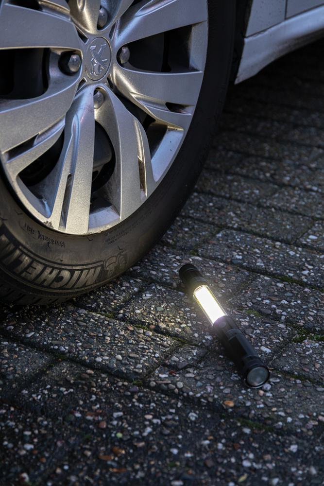 Extend it from 26 cm to 64 cm for superior reach, with a front magnet perfect for retrieving small metal items from hard-to-access areas. The flexible head adjusts in any direction once extended, ensuring optimal lighting angles. Equipped with bright COB LEDs delivering 80 lumens and additional high-intensity LEDs, it offers exceptional visibility for workshops, events, or fieldwork.