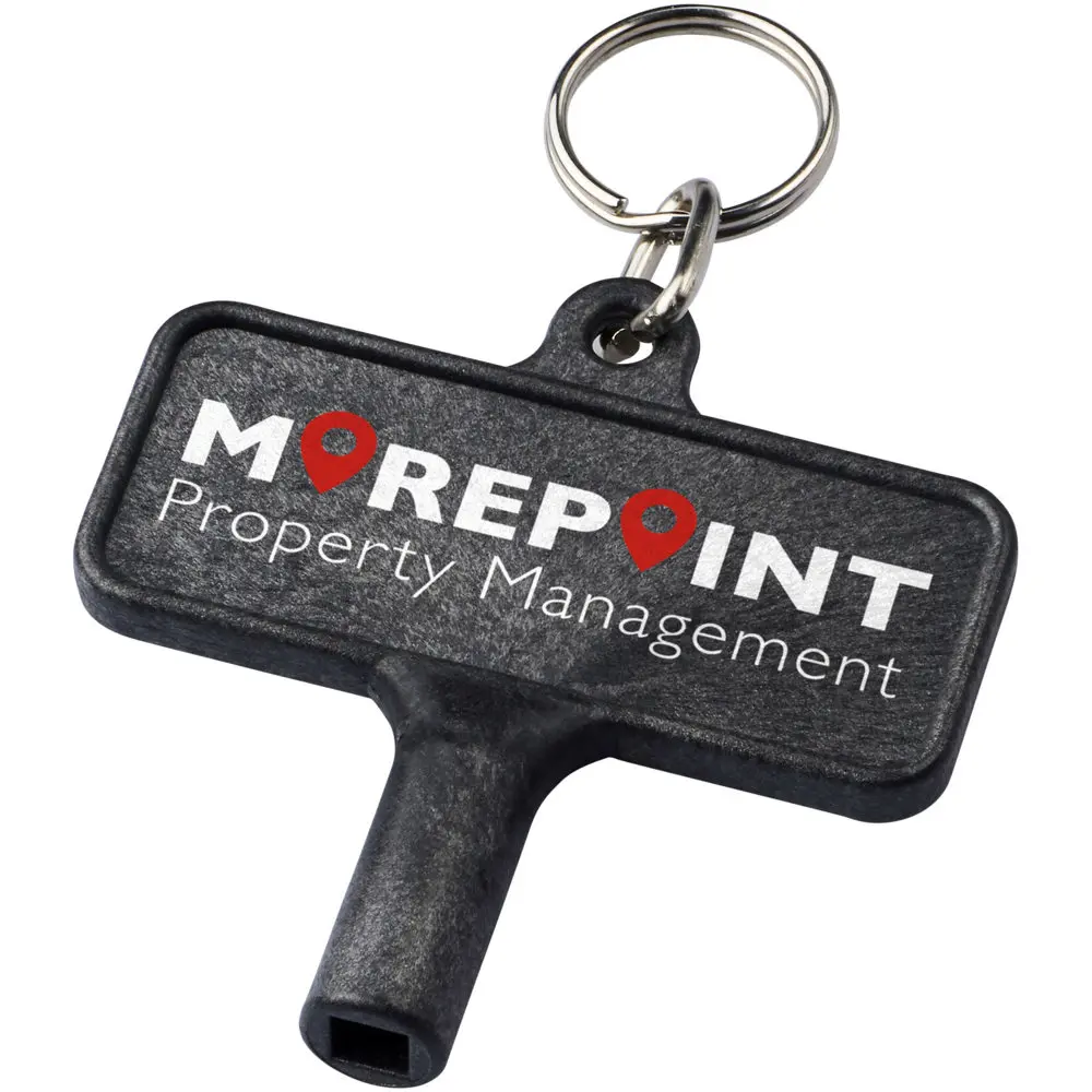 The Largo radiator vent keychain is a practical utility tool designed for easy access to radiators, meter boxes, and street poles, featuring a square 5mm opening for precise fit. Crafted from durable PC plastic and metal, this compact keychain measures 6.1 x 0.9 x 5.8 cm, making it an ideal everyday essential that combines functionality with branding opportunities.