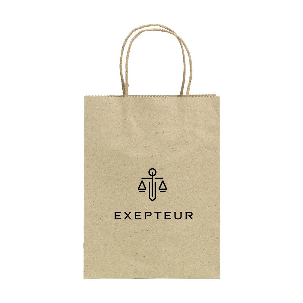 Elevate your promotional giveaways with this sturdy medium-sized gift bag crafted from 120 g/m² recycled grass paper. Embrace sustainability without compromising quality—no trees are cut down in production, making it an ideal choice for eco-conscious branding.