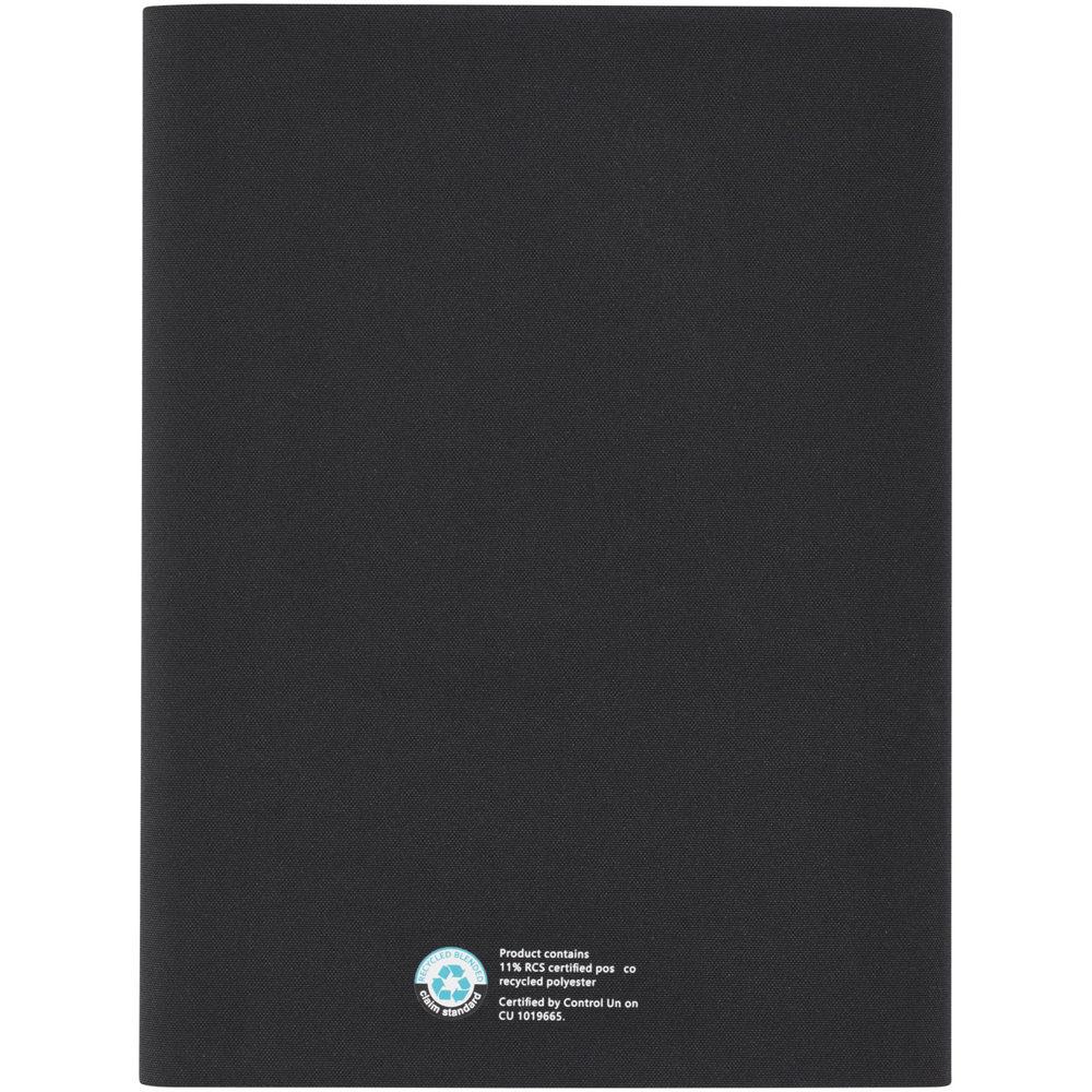 Elevate your brand's promotional efforts with the RCS certified Liberto padfolio, crafted partly from recycled post-consumer polyester for a sustainable alternative that minimizes virgin raw material use. This eco-friendly notepad holder features a practical pen loop, accordion pocket for documents, and 64 lined sheets of 80 g/m² recycled paper from sustainable sources—ideal for note-taking during meetings or events.